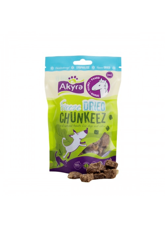 Akyra Freeze Dried Chunkeez zijn puur natuur: zorgvuldig gevriesdroogde stukjes spiervlees of vis, zonder toevoegingen. Voor echte carnivoren een onweerstaanbare traktatie die smaakt en ruikt als vers rauw vlees. Ze worden in Europa gemaakt en bevatten maar één ingrediënt, namelijk vlees van één eiwitbron. Geen toevoegingen en minimaal bewerkt.