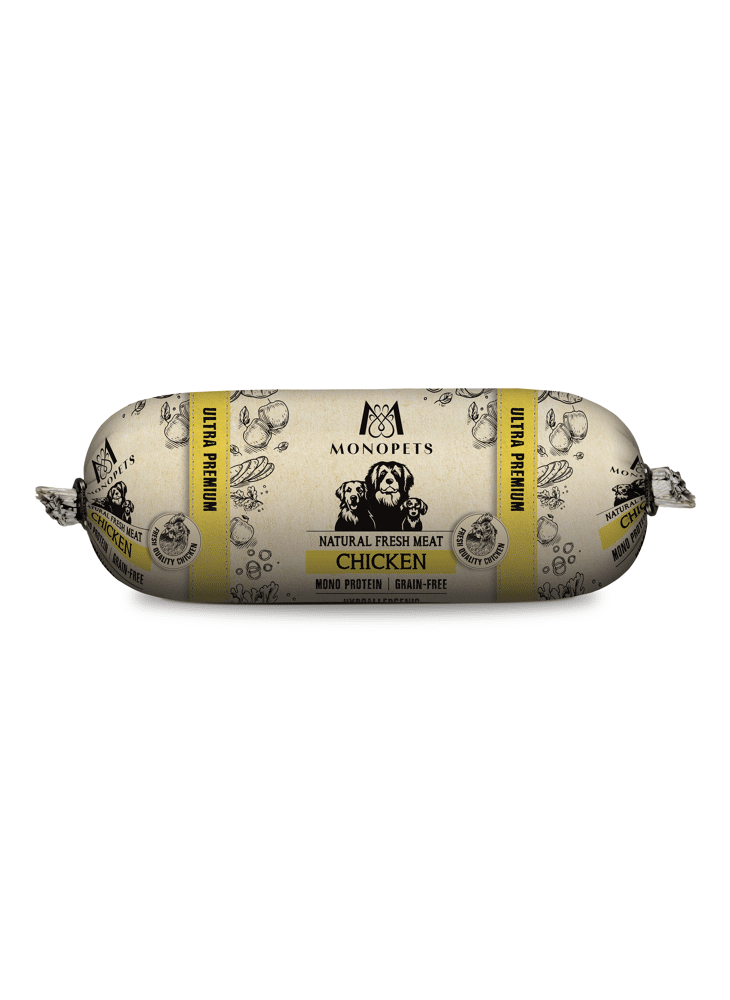 Ultra premium graanvrije hondenworst met verse kip voor alle volwassen hondenrassen.