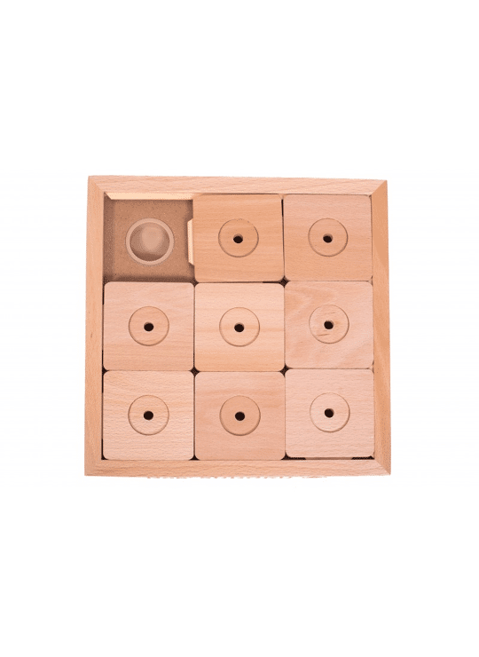 In de Medium Expert-editie van Dog' SUDOKU® schuift de hond 8 houten tegels over 9 velden waar de lekkernijen zijn verborgen.